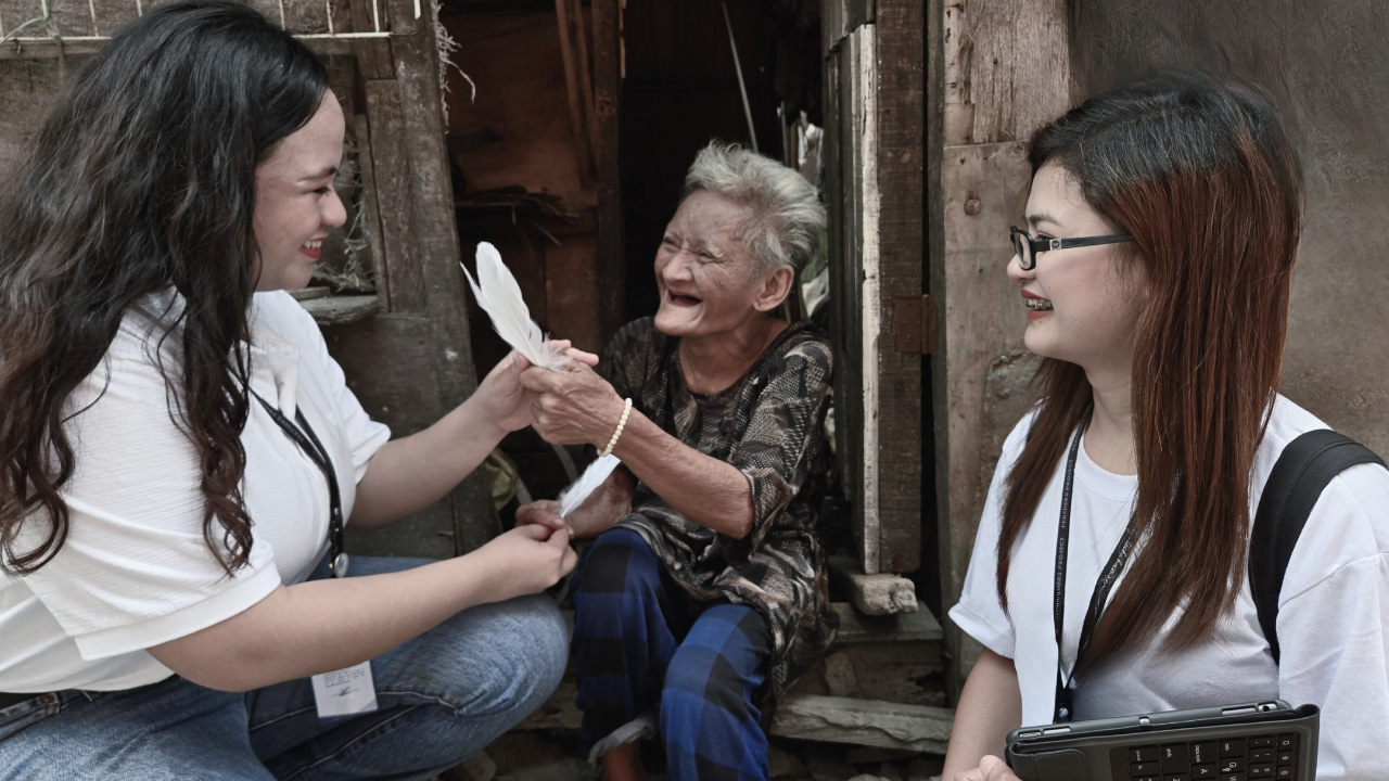 The commitment is sealed in a special ceremony, where a Feathers Project Field Advocate, a volunteer Ceremony Steward, and the beneficiary meet in person. The ceremony concludes with the exchange of feathers symbolizing a mutual commitment and appreciation.